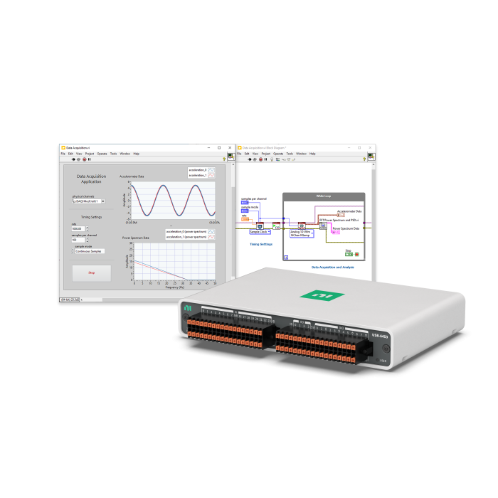 Associez mioDAQ à votre logiciel préféré, y compris le logiciel de configuration rapide et d’enregistrement gratuit de NI, ou des API et des programmes d’exemple pour NI LabVIEW, Python et C/C++.
