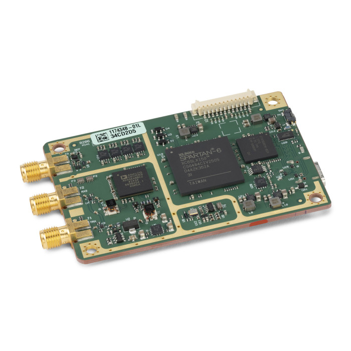 Le USRP B206mini-i est un transcepteur radio logicielle (SDR) 1x1 au format ultra-compact, équivalent à une carte de visite. Il couvre une large gamme de fréquences de 70 MHz à 6 GHz et intègre un FPGA Xilinx Spartan-6 LX150 programmable par l’utilisateur. Avec son bus USB 3.0 Type-C, ce module est idéal pour les environnements d’enseignement, de prototypage, d’OEM et de recherche.