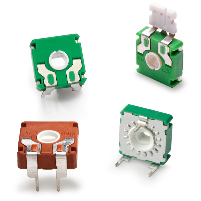 - Polyvalence de configuration : résistance, tolérance, lois de variation, clics (jusqu’à 50), position du curseur, couleur du boîtier et du rotor.