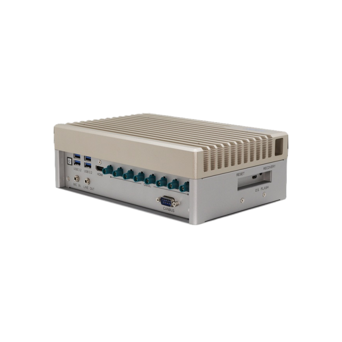 - Connectivité étendue : 5 ports Gigabit Ethernet, 8 interfaces GMSL2 avec connecteurs Fakra, CANBus et COM programmables.