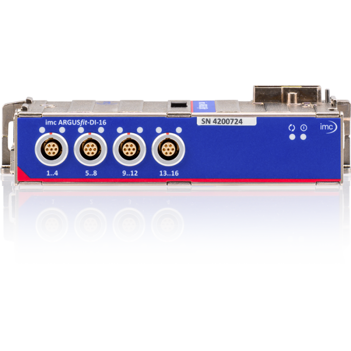 Le module imc ARGUSfit DI-16 est un module d’acquisition numérique à 16 entrées appartenant à la gamme imc ARGUSfit. Il permet la capture rapide de signaux logiques ou de statuts jusqu’à 100 kHz, avec une isolation galvanique renforcée et une compatibilité avec les niveaux TTL (5 V) et 24 V. Ce module vient compléter les systèmes d’acquisition modulaire imc ARGUSfit, offrant des possibilités de mesure numériques flexibles pour les applications industrielles, automobiles et embarquées.