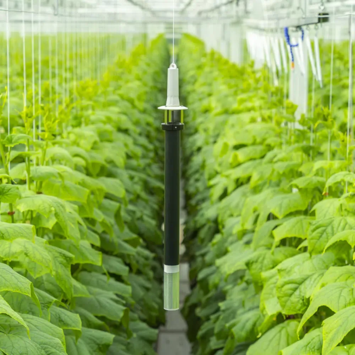 Le tube du capteur est segmenté en sections réfléchissantes et noires. Cette conception fonctionne comme un mécanisme de ventilation passive qui génère efficacement un flux d'air passif à travers le tube. La ventilation passive maintient des conditions optimales pour des mesures précises, ce qui en fait une solution idéale pour les applications de surveillance des serres.