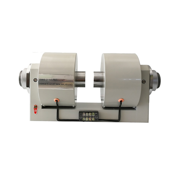 Le champ magnétique est réglable dans les deux sens. De conception monobloc, il s'agit d'un appareil à champ magnétique horizontal. Son support vertical offre un large espace de travail, facilitant son utilisation ou son raccordement à d'autres équipements. Il s'agit donc d'une conception très répandue. Il est utilisé pour des études d'effet Hall, de magnétorésistance, de magnétostriction, ainsi que pour les magnétomètres de couple, les magnétomètres à force, les VSM, etc.