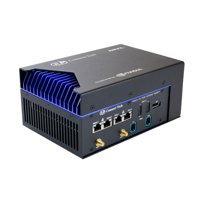 L’Anvil-T5 est un système Edge AI industriel haute performance conçu pour les applications d’autonomie, de robotique avancée et de perception intelligente. Basé sur la plateforme NVIDIA Jetson Thor (T5000), il combine une puissance de calcul extrême avec une architecture durcie et fiable, adaptée aux déploiements terrain et aux environnements contraints.