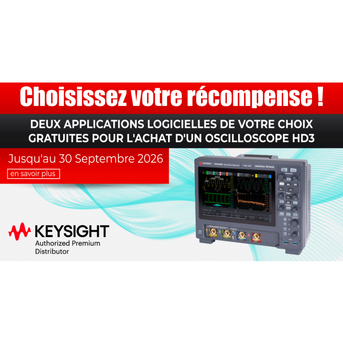 Jusqu'au 30 septembre 2026, pour l’achat d’un nouvel oscilloscope HD3 Series, bénéficiez de DEUX applications logicielles éligibles offertes :
