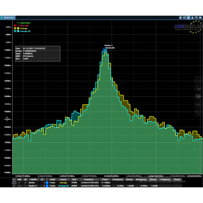 La base de temps disciplinée GPS permet d’atteindre une précision de l’ordre de 5 ppb, activable via une mise à jour logicielle, sous réserve de la configuration matérielle compatible.