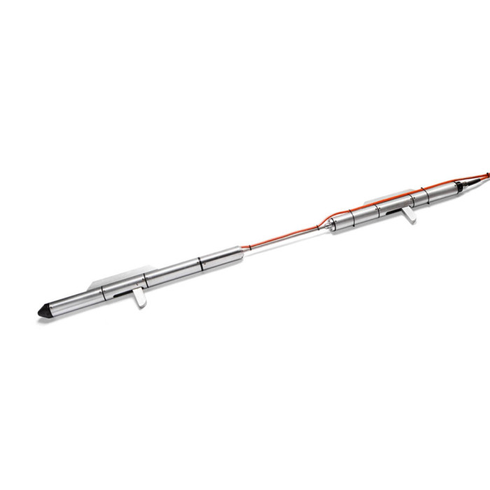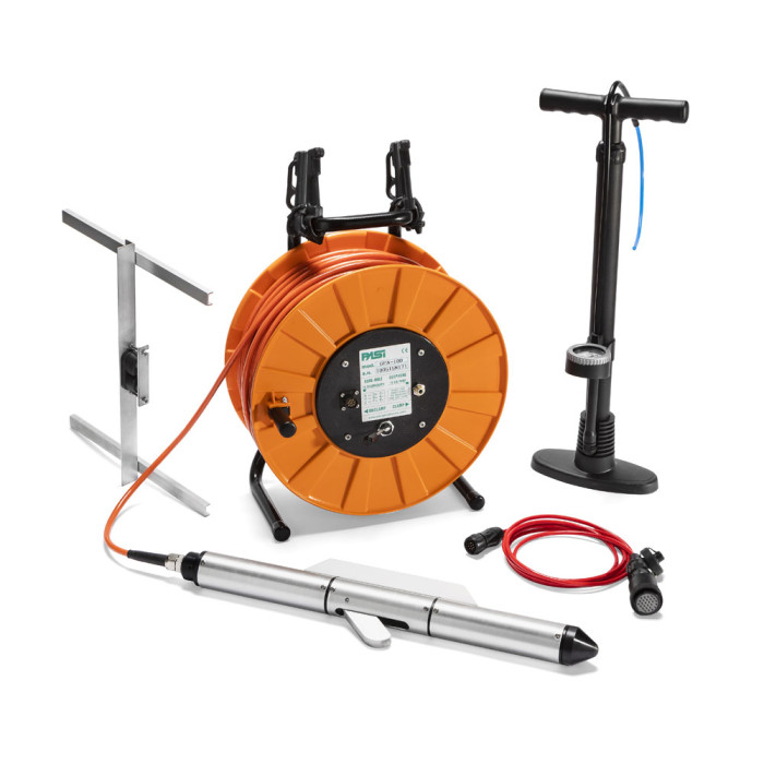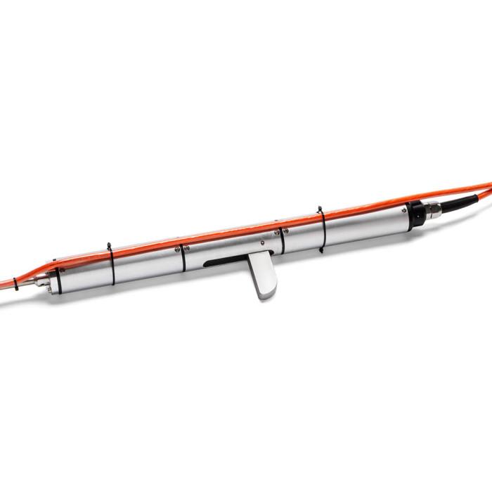 Le géophone 3D de forage modèle GFA, disponible avec un câble de 50 ou 100 m, est fourni avec une sonde en aluminium anodisé dotée de 3 capteurs haute sensibilité, orientés selon un système d'axes cartésiens orthogonaux XYZ (fréquence nominale 10 Hz – 1 capteur vertical et 2 capteurs horizontaux). Léger et facile à transporter, il est adapté à une utilisation sur site et facile à entretenir. Livré avec un système de fixation permettant de maintenir sa profondeur à la profondeur souhaitée (le câble GFA est gradué en mètres), ce géophone de forage est équipé d'un système de serrage pneumatique-mécanique avec levier latéral et entretoise. En présence de fluide de forage, la sonde peut être lestée grâce à l'embout interchangeable fourni.
