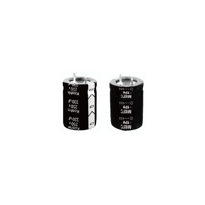 La série KPH Koshin se distingue par sa faible impédance et sa durée de vie de 5000 heures à 105°C, offrant une stabilité électrique accrue dans les alimentations à forte sollicitation. Sa large couverture de tensions jusqu’à 450 VDC permet de répondre aux exigences des conceptions industrielles, RF et puissance.