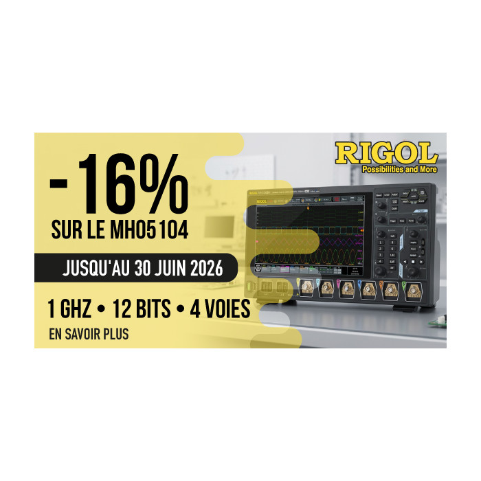 L'oscilloscope haute performance 1 GHz, 12 bits : MHO5104 bénéficie actuellement d’une promotion exceptionnelle permettant aux ingénieurs et laboratoires de test d’accéder à un instrument de mesure avancé à un prix particulièrement avantageux.