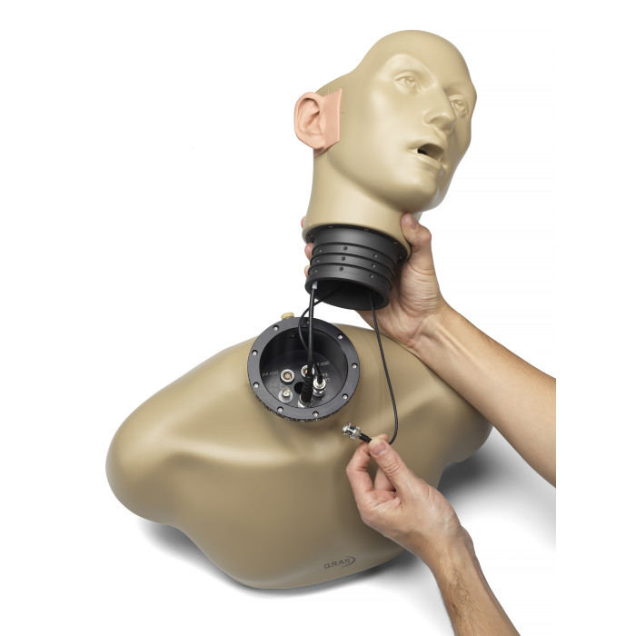 Le 45BD AutoKEMAR de GRAS est une tête artificielle HATS (Head And Torso Simulator) spécialement conçue pour les tests acoustiques en habitacle automobile. Basé sur la plateforme KEMAR éprouvée, ce système reproduit fidèlement l'influence acoustique du corps humain afin de garantir des mesures réalistes.