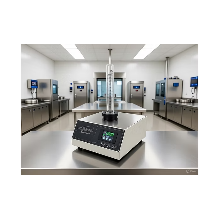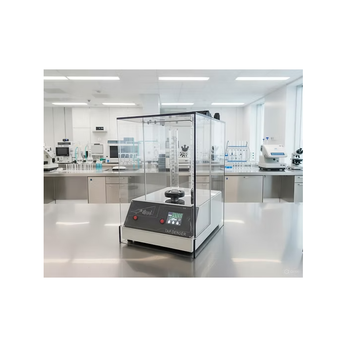 À la fin de l'essai, la variation de volume est lue directement sur le cylindre gradué en centimètres cubes (cc), ce qui permet de déterminer le volume final de tassement du matériau. Les résultats obtenus sont reproductibles et comparables, ce qui rend cette méthode particulièrement adaptée au contrôle qualité et au développement de produits.