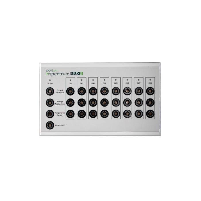 L’Inspectrum.10-5-MUX-8 est un multiplexeur multicanal conçu pour étendre efficacement les capacités des systèmes de mesure Inspectrum dédiés à l’analyse des batteries. Compact et optimisé pour les environnements de test, il permet de passer d’une voie de mesure à 8 canaux sans avoir à reconnecter manuellement les cellules.