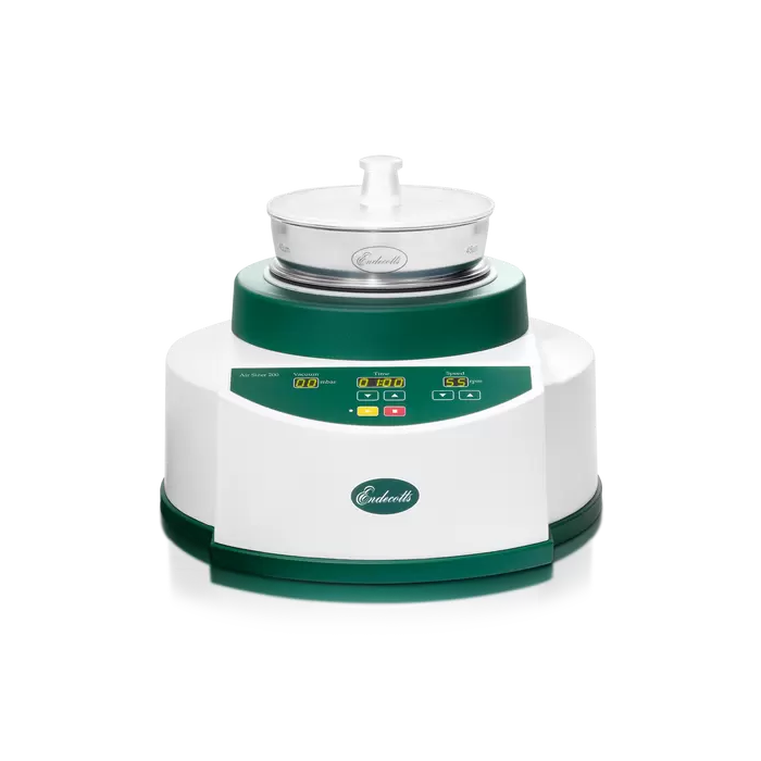 Le principe de fonctionnement est le suivant : un échantillon d'une certaine quantité destiné à être tamisé est placé sur le tamis choisi et le couvercle en polycarbonate est placé par dessus. Le dispositif puissant de dépression génère une pression négative dans la cuve sous le tamis, induisant un flux d'air qui déplace l'échantillon au-dessus de la surface du tamis au moyen d'une buse rotative, située sous le tamis et créant une " lame " d'air. Le même flux d'air attire simultanément les particules trop petites en suspension dans l'air de l'échantillon au travers des orifices du tamis. Les particules trop petites étant déposées comme indiqué ci-dessus.